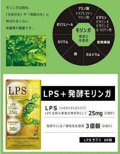 小麦を発酵させて得られたLPS(リポポリサッカライド)含有成分と、栄養豊富なモリンガ発酵末を組み合わせたサプリメントです。